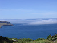 Anyway, we did get close to a fur seal on the rocks and I did catch a couple of glimpses of the big birds as they soared over cliffs. Out around the “narrows” leading into the harbour was the strangest fog bank I have ever seen. It was thick enough to seriously delay one of the cruse ships from coming in on time but it was limited just to a specific area. It also stayed there for the whole day. Bizarre.